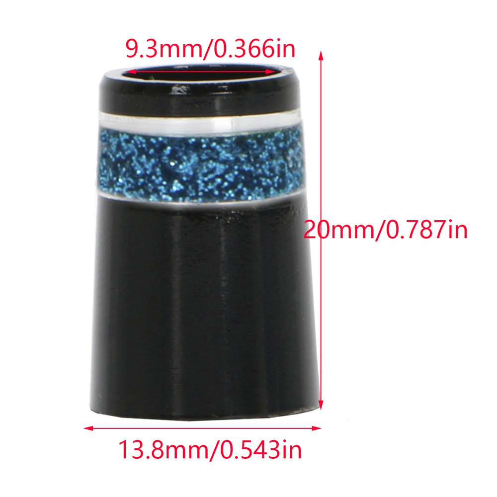 Tip: 0.370"Material: PlasticLength: 20 mm/0.79 inUpper Inner Diameter: 9.3 mm/0.37 inLower Outer Diameter: 13.8 mm/0.54 inColor: Red/Blue/Silver/Green